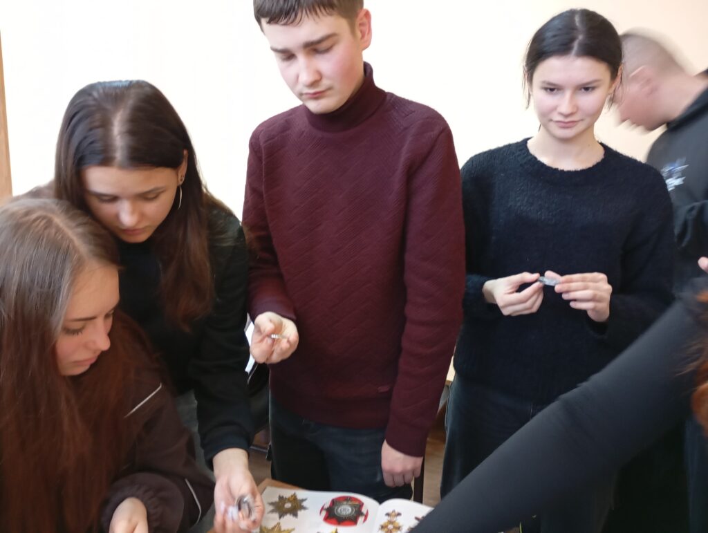 20 листопада 2025 р. відбулося чергове заняття студентів другого курсу освітньої програми “Історія та археологія” Карпатського національного університету імені Василя Стефаника у навчальній лабораторії спеціальних історичних дисциплін присвячене фалеристиці. Завідувач навчальної лабораторії Саганюк Володимир Федорович ознайомив студентів із науковою літературою про ордени та історію нагородної системи, колекцією оригінальних українських та зарубіжних медалей, що зберігаються у фондах навчальної лабораторії. Викладач спеціальних історичних дисциплін – професор кафедри історії Центральної та Східної Європи і спеціальних галузей історичної науки КНУВС Шологон Лілія Іванівна звернула увагу на сучасну українську систему нагород.